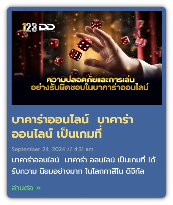 แพลตฟอร์ม123DD จัดเต็มด้วยตัวเลือกเกมที่ตอบโจทย์ผู้เล่นทั้งสายคาสิโนเดิมและสายเกมใหม่ เริ่มตั้งแต่ บาคาร่า – เกมไพ่ยอดฮิตที่เล่นง่ายและคืนทุนไว ไปจนถึง สล็อตออนไลน์ ที่เปี่ยมไปด้วยธีมหลากหลายและแจ็กพอตรางวัลใหญ่ คอบอลหรือคนรักกีฬาอยากลุ้นผลทันที พวกเขาก็มี แทงบอล ที่อัปเดตราคาได้อย่างแม่นยำ แทงหวย สำหรับคนชื่นชอบเสี่ยงเลข ก็รองรับหลายประเภทหวย ทั้งหวยรัฐบาล หวยหุ้น หวยยี่กี และหวยอื่นๆ อีกมากมาย และยังมีเกมคาสิโนสุดฮิตอื่นๆ เช่น รูเล็ต ไฮโล เสือมังกร ฯลฯ ที่ให้ความรู้สึกลุ้นระทึกตลอดการเดิมพัน123 DD ออกแบบมาเพื่อตอบโจทย์ทั้งผู้เล่นมือใหม่และมือเก๋า ด้วยอินเทอร์เฟซที่ใช้งานง่าย มีหมวดหมู่เกมแบ่งชัดเจน รองรับการเล่นผ่านมือถือและคอมพิวเตอร์ ความปลอดภัยของข้อมูลและการชำระเงินเป็นสิ่งสำคัญ – พวกเขามักใช้ระบบ SSL และการยืนยันตัวตนผ่านระบบอัตโนมัติ เพื่อให้คุณมั่นใจว่าเงินและข้อมูลส่วนตัวได้รับการดูแลอย่างเข้มงวดเพื่อดึงดูดและรักษาผู้เล่น 123 DD มักมีโปรโมชั่นต้อนรับผู้เล่นใหม่ เช่น โบนัสฝากครั้งแรก คืนยอดเสีย หรือแจกฟรีสปินในสล็อต และสำหรับสมาชิกประจำก็มีโปรรายวัน รายสัปดาห์ เช่น โบนัสเติมเงิน หรือคืนค่าคอมมิชชั่นจากการเดิมพันต่างๆ ทำให้การเล่นไม่น่าเบื่อ แถมยังคุ้มค่าไม่ว่าคุณจะมีคำถามเรื่องการฝาก–ถอน หรือเงื่อนไขต่างๆ ทีมงานบริการลูกค้าของ123DD ก็พร้อมช่วยเหลือตลอด 24 ชั่วโมง ผ่านแชตสด ไลน์ หรือโทรศัพท์ พวกเขาพร้อมให้คำแนะนำและแก้ไขปัญหาทันที